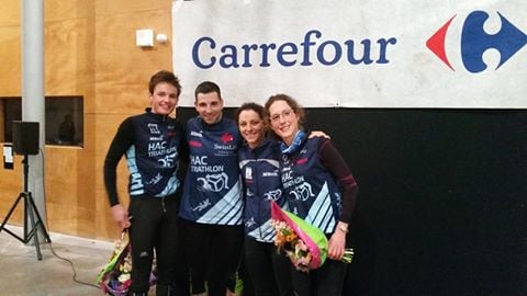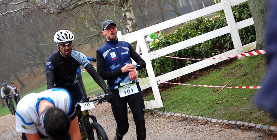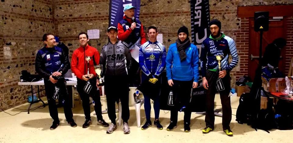 Sur un circuit inchangé mais toujours aussi physique et rendu encore plus technique par la bouillasse, l’avantage a été pris dès la partie pédestre par Jérôme Neveu, propulsant son binôme Mathieu Lefèbvre aux avant-postes à VTT. Les deux compères, qui avaient terminé seconds lors des deux éditions précédentes, feront cavaliers seuls sur la totalité de l’épreuve et relégueront les poursuivants à 1’. Le HAC triathlon s’est illustré en occupant les deux autres marches du podium mais la bataille fit rage dans un final terrible entre Christophe Plaissy-Cyrille Debray et Mathieu Chapelle-Manu Tirard. 8 toutes petites secondes départagent les deux équipes ! Du sport comme on l’adore !!!