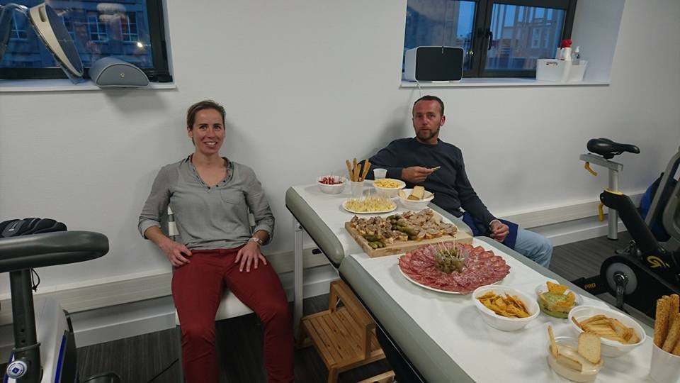 Ce fut un moment très convivial dans les locaux flambant neufs du troisième étage de la clinique François 1er. Nos hôtes ont présenté aux 14 présents leur cadre de travail, leurs installations et autres appareils modernes et sophistiqués. La discussion s’est poursuivie pendant deux heures autour d’un brunch avec des kinés (Rémi Peureux, Benjamin Gueville), un osthéo (Pierre Emmanuel Leroux) et un médecin (Jean-Marc Poupel).