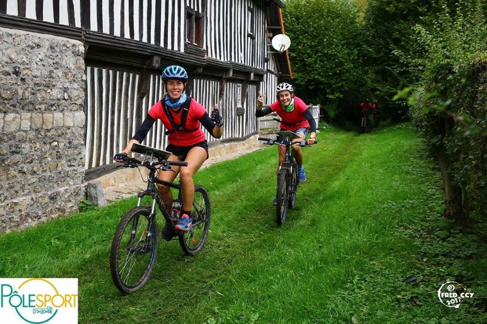 Beaucoup de « ciel et marine » sur ce petit raid local. Si Emilie faisait équipe avec un ami, « Les Delphines » formait une équipe 100% HAC et 100% féminine ! De son côté, Bertrand s’était acoquiné avec un maître de l’orientation (plusieurs fois champion de France master de VTT O), not’bon Patrick Eudier himself !!! On a aperçu aussi les frérots Marco et Franky, Tony, Stéphane B., Et Nicolas M. Voici le programme de ce 8e raid accessible à tous en raison d’un format raisonnable : VTT 34 km, Co 3 km, Trail 7 km, B&R 6 km.